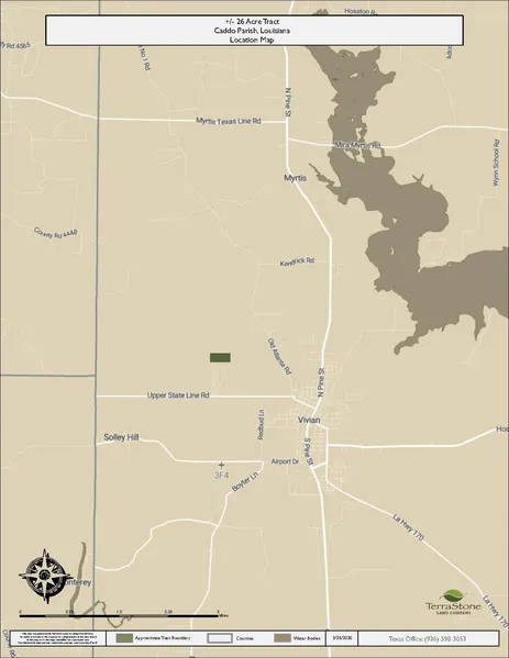 Nice 25 acre timberland tract planted in 2001 and ready for first thinning. Property is located just west of Vivian. The property does not have public road frontage.