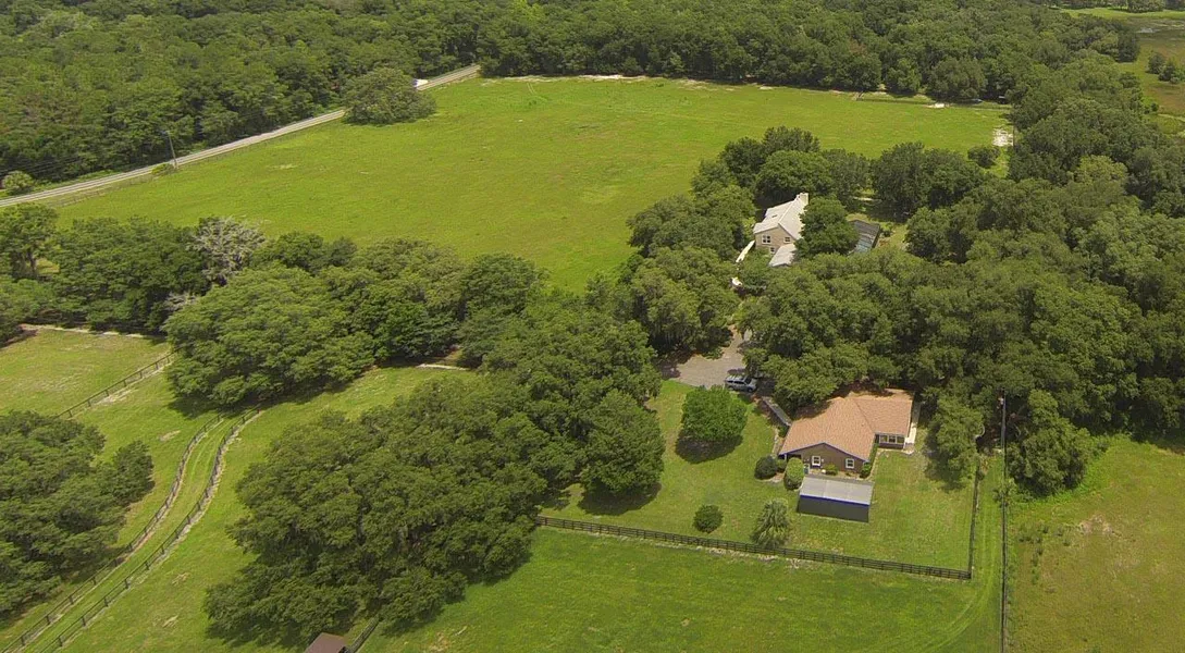 Pass the gated entry and approach this outstanding residence following the paved tree lined driveway. Every attention to detail has been included in this 4,558 sqf masterpiece. Surrounded by 25 acre scattered with major oak trees, this 3 bedroom 2.5 bath delight comes with an open and airy floor plan. Youll find a top of the line culinary kitchen with Corian countertops and a large walk-in pantry! The towering stone fireplace and cathedral wood ceiling are the focal point in the stately living and dining area. Amazing screened-in patio with summer kitchen, pool and hot tub provides a great view of the countryside: A showcase of lush pastures, with wooden board horse fencing, a pond, paddocks with shelter, water & electricity, and a barn. The second residence boasts 2,876 sqf and houses the guest quarters, another kitchen, bathrooms and impressive office space. You will enjoy running your business that close to your home! The convenient location provides easy access to I-75 and US-41.