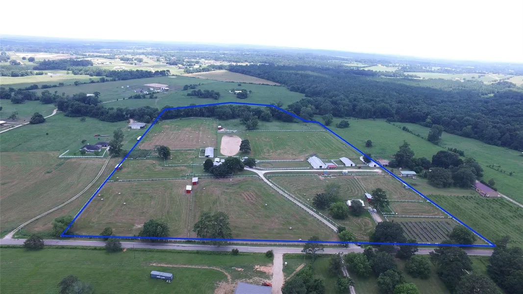 Discover the epitome of equestrian living at this remarkable 25-acre farm, a true hidden gem nestled in the picturesque landscape of New Waverly, Texas. Steeped in history and charm, this property is anchored by a beautifully maintained 3-bedroom, 2-bathroom ranch home originally built in the early 20th century. The home exudes rustic elegance, offering a perfect blend of timeless character and modern comforts. Spacious covered porches invite you to unwind and soak in the serene beauty of the surrounding pastures, mature trees, and rolling hills that stretch as far as the eye can see.
