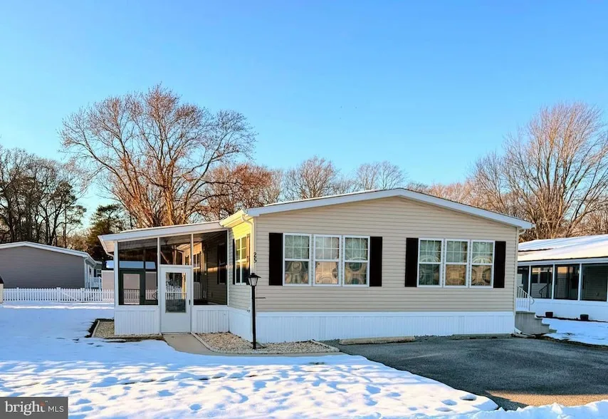 Welcome to 25 Bay Breeze in beautiful Rehoboth Beach, Delaware! This charming 3-bedroom, 2-bath home offers 1,624 square feet of comfortable living space. The heart of the home is a spacious kitchen, large enough to accommodate a table for six, making it perfect for entertaining. Each room is equipped with ceiling fans for year-round comfort, while the screened-in porch invites you to relax and enjoy the coastal breeze. The property also features a large shed in the backyard, perfect for storage or hobbies. This home has been completely inspected, and all necessary repairs have been completed, offering peace of mind to the next owner. The community offers optional access to a pool, providing a great space to unwind during the warmer months. This is a must-see property call today to schedule your private tour! Please note, the buyer is subject to park approval, which includes a credit score check, income verification, and a criminal background check. The application fee is $68 per applicant.