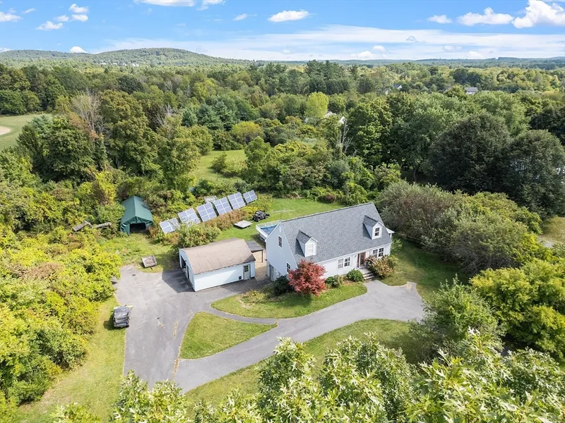 Welcome to Chace Avenue! This spacious 7-room, 3-bed, 2-bath Cape sits on 1.84 acres near the elementary and middle schools. The first floor features a large living room, formal dining room with access to the rear deck and above-ground pool, a spacious kitchen, office/family room, laundry, and a main bedroom with walk-in closet and private bath. The ensuite offers a double vanity and a tiled shower with rain, handheld heads, and body sprays. Upstairs are two large bedrooms and a second full bath. Enjoy low electric bills with owner-owned solar panels. The expansive yard includes apple, pear, and peach trees—perfect for outdoor activities. Additional highlights: detached 2-car garage, canvas covered storage areas, 3-season porch off the kitchen, newer roof (6–7 years), and a high-efficiency Burnham boiler with Buderus hot water tank. A perfect blend of comfort, space, and convenience!