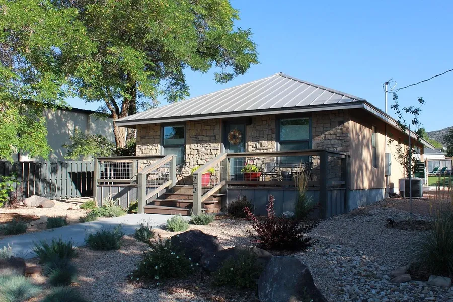 Named the Theater House because it is next door to the iconic Wayne Theater, this home has been completely and very tastefully remodeled with quality materials. Light and airy with 2 bedrooms. The main bedroom has French doors leading to the patio. Currently a VRBO with excellent reviews. Ideal for a place to stay when you want to enjoy the beauty of the Capitol Reef area; and income potential when you are away. Fully furnished with the ability to be a turnkey vacation rental.