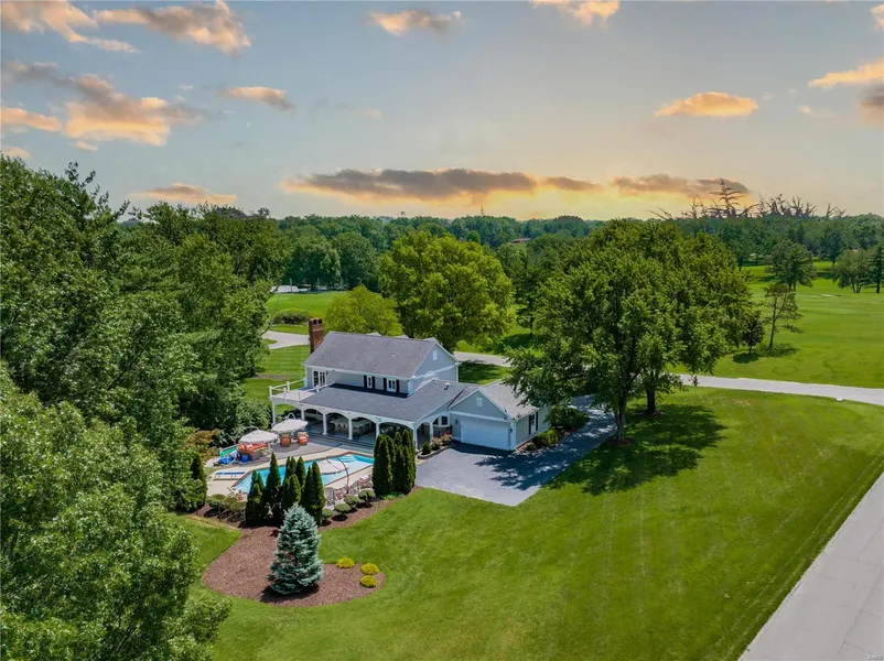 Stunning sought out New England style property in Forest Hills Country Club. 4 bedrooms and 3 baths. Facing the golf course and club house. Corner lot on 1 acre. Finished walkout basement. Upgrade includes new HVAC and heat systems, window and gutters, new decks and covered patio which includes new outdoor TV, audio, ceiling fans and twelve seat bar are with quartz counter top. New epoxy floor in garage along w/ new custom cabinets. Updated kitchen and bathrooms throughout. Professional landscaped and upgraded irrigation system. New deck off master bedroom suite. New hardwood floors through entire main level. Plantation shutters throughout, New storage room underneath deck by walkout from basement. There are no corners cut in this home! Made for entertaining w/stunning high quality finishes TOP TO BOTTOM. Wonderful club events, dinners, golf tournaments, tennis groups, hosted events as a members, plus golf cart life! Marquette School District, one of the best in STL.
