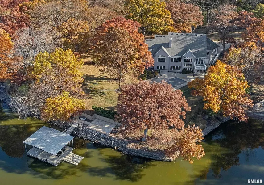Nestled in a gorgeous Lake Springfield cove this incredible estate showcases high end craftsmanship thoughtfully designed w/comfort & elegance top of mind. You're welcomed by a wall of windows & vaulted living space where warm hardwoods, modern fixtures & a stone fireplace frame captivating views of the lake. From there you'll find a true chef's kitchen loaded w/fabulous perks like a Viking 48' fridge, custom cabinetry & a huge island w/bar seating. Downstairs, panoramic views continue through an impressive lower level where you'll entertain, relax & spread out effortlessly across the large family & rec space. Nearby a custom wet bar is complete w/cabinetry, counterspace, wine storage & mini fridge while BR's 2-4 include a deluxe guest's suite w/en suite bath access. LL bonus rm & additional full bath are like cherries on top; not to mention walk out access to your very own poolside paradise. Sitting against a picturesque backdrop, the meticulously maintained inground saltwater pool features an updated liner, gas heater, electric cover & salt cell new in 2023 while nearby patio is hot tub ready & 220v equipped. Gently sloping greenspace leads to over 400ft of shoreline while an Ozark covered boat slip & 2 EZ-Dock jet ski docks await in calm waters. Framed by mature trees for both shade & privacy while recent additions like irrigation pump & new Trex decking this year keep maintenance minimal. Privacy, luxury & location are unmatched in this premier Lake Springfield home!