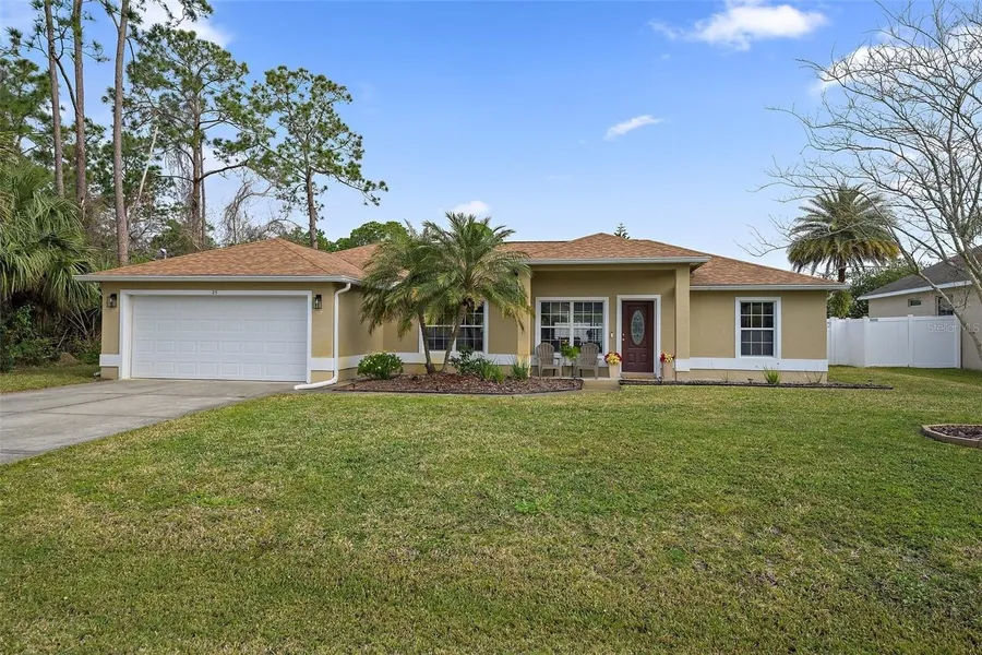 Under contract-accepting backup offers. Florida Pool Paradise Just Minutes from Flagler Beach! Welcome to your dream oasis in beautiful Palm Coast, FL—just a short drive from the charming, laid-back shores of Flagler Beach. Nestled in a thriving, well-developed community that's still growing, this stunning 3-bedroom, 2-bath home is a true slice of paradise with all the Florida lifestyle amenities you've been searching for. Step into a spacious open-concept floor plan that perfectly blends comfort and elegance. The heart of the home is a chef’s dream kitchen, featuring rich 42” dark wood cabinets, gorgeous granite countertops, tile backsplash, a farmhouse sink, a large island with seating for entertaining, and updated stainless-steel appliances (dishwasher brand new 2025). A pass-through window connects the kitchen to the outdoor bar seating—perfect for hosting and dining al fresco. The living and dining areas flow seamlessly together, with an inviting alcove off the living room ideal for a home office or cozy play space. Vaulted ceilings and fresh paint provide a spacious, inviting atmosphere. Tri-fold sliding glass doors bring in an abundance of natural light and open wide to reveal your personal tropical retreat. Outside, unwind in the glowing, oversized pool (RESURFACED 2023 and professionally maintained, pool pump 2020) with a detached jacuzzi, all enclosed in a fully screened lanai. Relax under the gazebo, nap in the hammock, or refresh in the private outdoor shower. The fully fenced backyard offers both privacy and room to roam. ROOF 2020. Retreat to the luxurious primary suite with beautiful hardwood floors and custom built-in closet shelving. A charming barn door leads to a spa-inspired en suite bath featuring not one, but TWO showers—a walk-in and a separate shower/tub combo—plus a linen closet for extra storage. The split floor plan offers privacy for guests, with two additional bedrooms and a guest bath designed with high-end finishes and a spa-style tub and shower. Currently a successful Airbnb rental booked year-round, this home is not only a beautiful residence but a smart investment. Conveniently located near top-rated schools, grocery stores, dining, shopping, golf courses, boating, and scenic waterfront trails—this is Florida living at its finest. Don’t miss your chance to own a one-of-a-kind pool home oasis near the coast!