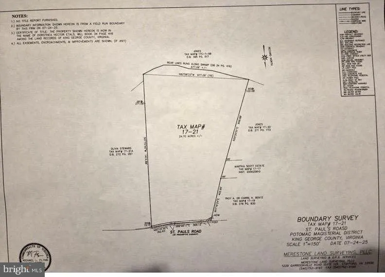 A unique opportunity to own approximately 25 acres in the heart of King George County. This expansive parcel features a mix of open land and mature woods, offering a peaceful setting for a private estate, recreational retreat, or future development. Agricultural uses are permitted, making it ideal for farming, gardening, or keeping animals. The zoning also allows for subdivision with a minimum lot size of 2 acres, providing potential for multiple home sites. With no HOA and plenty of space to bring your vision to life, this land offers flexibility, privacy, and long-term potential. Conveniently located near Route 3 with easy access to Fredericksburg, Dahlgren, and Southern Maryland.