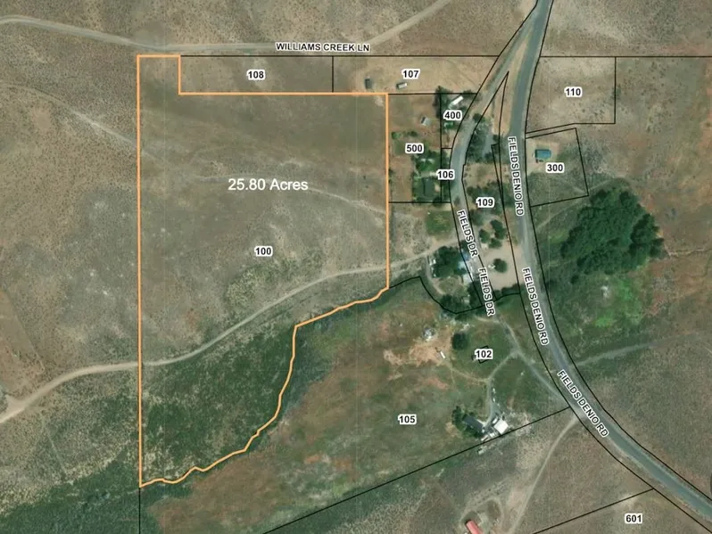 Welcome to one of the last great outposts. Fields Oregon is an unincorporated community 112 miles south of Burns Oregon. If you are looking for dark skies, peace and quiet and beautiful mountains you may just fall in love with Fields. This is a vacant 25.80 acre lot located just behind the Fields local store which is known for its hamburgers and famous hand made milk shakes. This is a great place to build a home or vacation property. Very close to the Alvord Desert, East side of the Steens Mountain Range and home to many natural hot springs in the area. This property has great access with a gravel road going through the property. The property is also fenced with cattle guards at each end. There is also a season Williams Creek that boarders the property on the south side. There is also power adjacent to the property. The property is zoned RSC-F1. This just may be your future destination property.