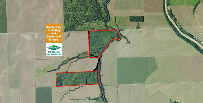 Directions: From Hwy. 80 west of Tallulah, take W. Bear Lake road approx. 6.5 miles to bridge on Tensas River. The tract starts at the bridge on the south side of the road. The access road to the back parcel is on the west side of the tract behind a locked cable.