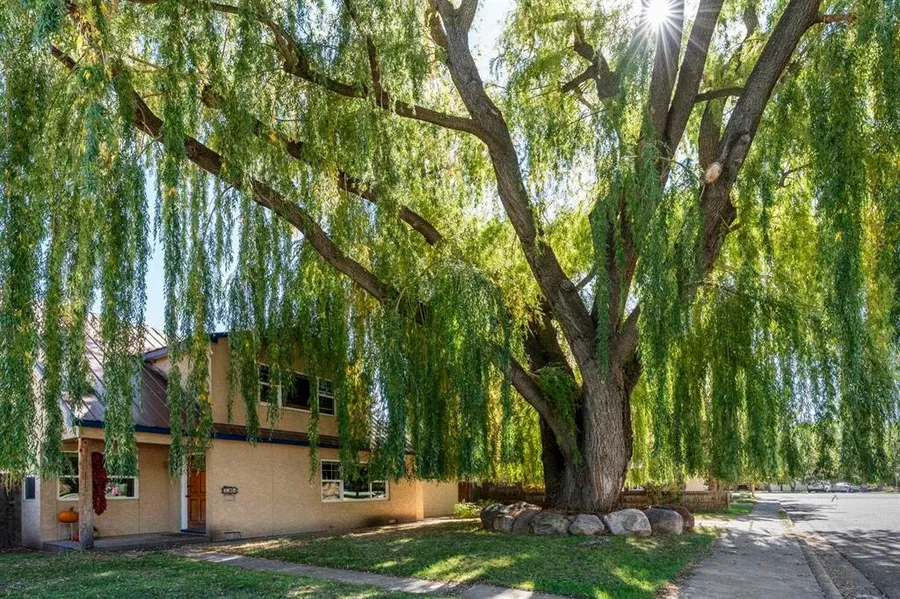 Coveted location 2 blocks from 3 schools, the Rec center and the fairgrounds. This 3 bed (could be 4) 3 bath home on an oversized lot 70x140, has amazing outdoor living space complete with hot tub, gazebo with lights, water feature and gas fireplace. The entire area is fenced and very private. Across the courtyard is an oversized 2 car garage, great storage and off-street parking for many vehicles (or toys) Zoned duplex. Architectural plans for ADU included. Upon entering the front door you'll find a living room on the right and office on the left (this room could easily have a closet added and be used as a bedroom (hardwood floors). Continuing down the hall is the main floor bedroom and adjacent full bath. Next is the large kitchen with black appliances and a big country sink overlooking the backyard area. Marble counters, cutting board counter, newer cabinetry (pantry), Dacor cooktop - all are +++. This room has a serving counter open to the great room which is down a couple steps from the main hall. And what a Great Room this is complete with high ceilings, big windows, (one has a view of Perins Peak), gas fireplace and doors to the courtyard. And this room has in floor heat, red Italian tile floors. Upstairs, remodeled in 2023 and newly carpeted, you will find a bedroom overlooking the backyard with adjacent full bath and the primary bedroom, bath and walk in closet with deep storage. The bath has been recently redone, and it is gorgeous. Wait until you see the unique tilework and many shower heads AND it is a steam shower. This bath is large and has great storage. Almost forgot very large laundry with storage area. All light and bright. You may want to move right in.