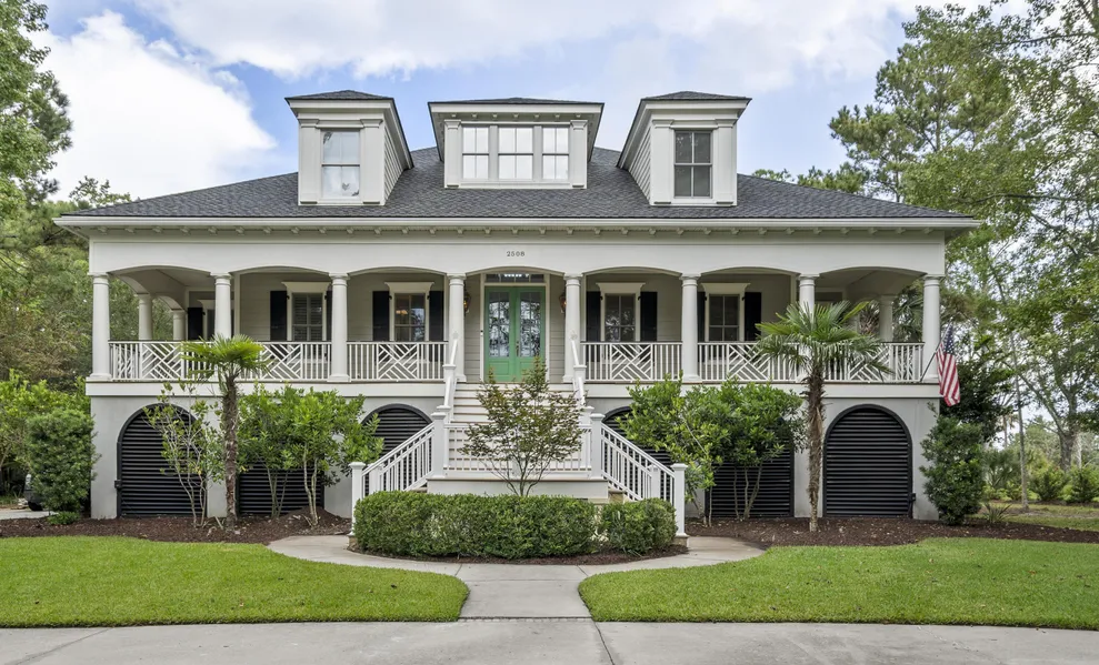 This Lowcountry Estate sits on a park-like private lot with majestic live oak trees and features a true deep water dock at the mouth of the Wando River and Toomer Creek. This custom home is impeccably finished with crown molding, barreled ceilings, hardwood floors and a recently remodeled kitchen complete with sub zero appliances and a picture window overlooking the water. Flexible living spaces include a sunroom and top floor recreation room, all accessible by elevator. A large walk in attic and workshop provide extra storage. The dock has water and electric with pylons in place for an electric lift. The floating dock accommodates up to a 24 foot boat. Dunes West amenities are available including golf, tennis, swimming and more.