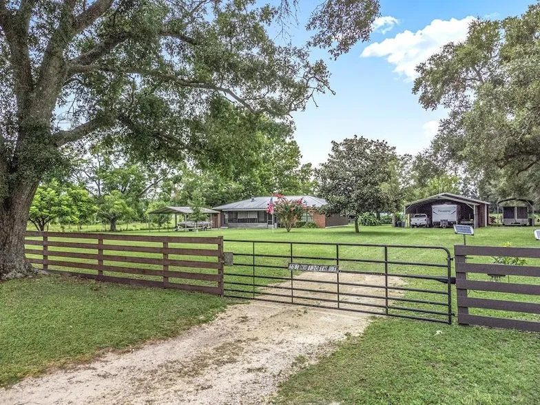 Welcome to this charming 2-bedroom, 1-bath home in the heart of Trenton, Florida. This well-maintained residence features a brand new AC system with a 10-year warranty for peace of mind. Enjoy the inviting screened-in front porch, perfect for relaxing, or step into the bright Florida room at the back of the home. Inside, the cozy living room offers a beautiful brick fireplace, creating a warm and welcoming atmosphere. The property boasts an impressive array of outbuildings and amenities, including a 30x50 enclosed garage with its own bathroom, a 24x28 attached carport, a dedicated RV carport, and an additional 20x20 carport for extra parking. There's also a greenhouse, chicken coop with irrigation, a 16x36 tractor wood barn, and a 24x24 garden shed with water and an almost finished den ideal for hobbies or extra storage. Set on a fenced and cross-fenced lot, this home offers plenty of space for gardening, animals, and outdoor enjoyment. Blueberries, mulberries, and blackberries grow right on the property, adding a touch of homestead charm. Whether you're looking for a peaceful retreat or a functional small farm setup, this Trenton gem offers it all.