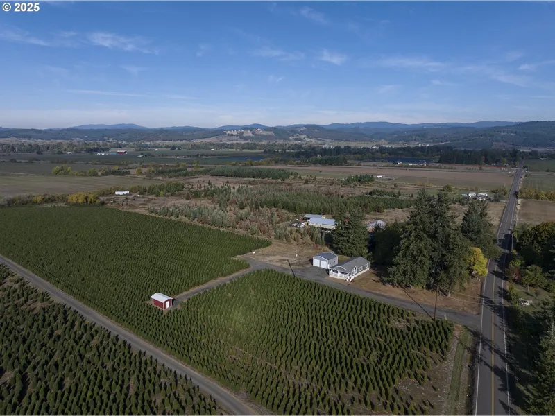 0.5 mi to Hwy 18 • Territorial views • 24×25 shop • 2023 one-level home on 90 acresInviting rural escape with wide-open vistas and functional acreage near Sheridan and McMinnville. The 2023 Skyline Athena model offers single-level living with 2 bedrooms, 2 baths, and 1,296 sq ft of bright, efficient space. Open-concept kitchen features a large island, solid-surface counters, and modern cabinetry adjoining a comfortable living area with solar-tube lighting. Primary suite includes a soaking tub and double vanity. The home sits on approximately 10 acres dedicated to the homesite, mature oak grove, and access roads, surrounded by an 80-acre Christmas tree farm lease (through 2028) that adds privacy and scenic beauty. Enjoy territorial and tree-farm views from the covered deck. Detached 24×25 steel garage/shop with dual 10' roll-up doors plus a pump house near the home site. Gravel driveway connects to paved Red Prairie Rd for easy commute routes 0.5 mi to Hwy 18 and 5.3 mi to Hwy 22. Well and septic in place, EFU zoning. Experience peaceful country living with space for gardens, hobbies, and nature watching all within minutes of town conveniences and wine country destinations.