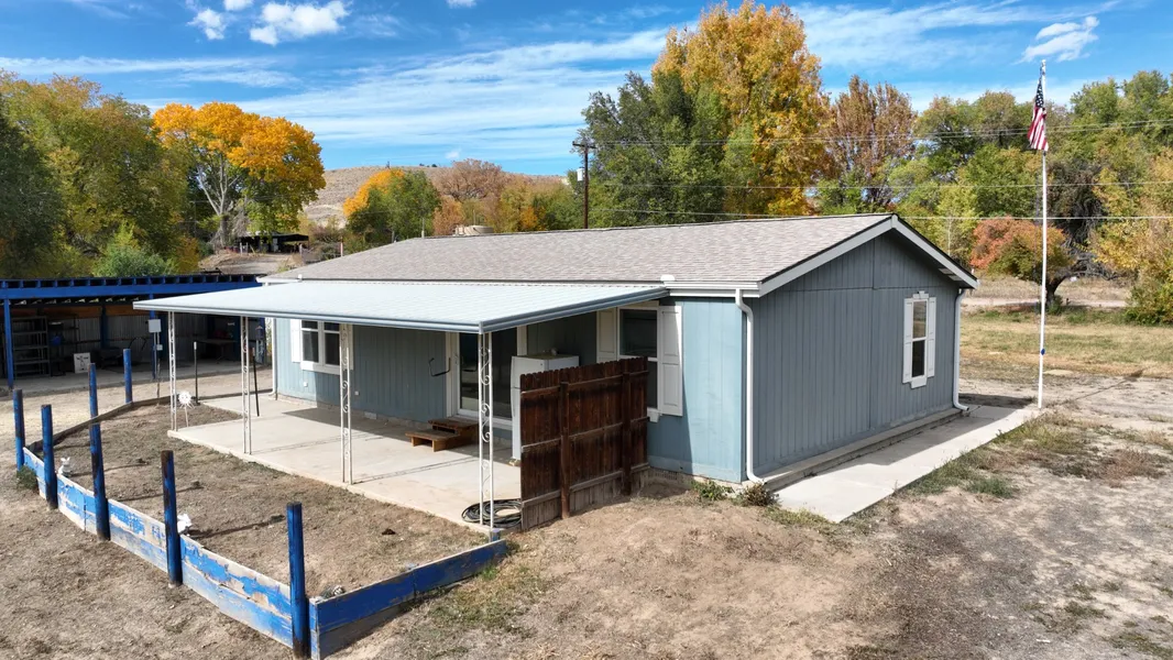 Come check out this roomy 2 Bedroom, office with double doors, 2 bath home with new interior paint, several large carports with electric, large and small storage building also have electric with plenty of room for your RV or outdoor toys. No propane on natural gas that sits on a private drive. Per seller; with irrigation that has set sprinklers for watering this beautiful property. Large patio with wrap around side walks. Seller will consider a flooring allowance with an acceptable offer. Excluding items in small & large storage building, items in carport and grill.