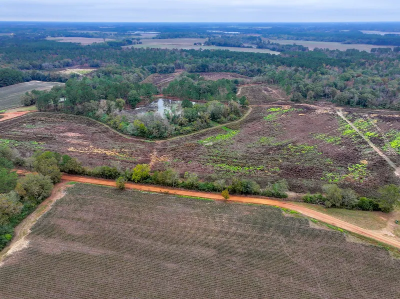 Approximately 53 acres of former agricultural fields have been planted in native longleaf pine, while retaining significant borders and fields within the pine planting for food plots of multiple sizes and shapes. A habitat improvement thinning was completed in the woodlands along Bear Creek to create food sources and cover for wildlife and improve access to the wooded portions of the property. The frontage along Bear Creek, over 6,700, makes up the northern and eastern boundary of the property, providing security and an ideal travel corridor for game to access the upland woods and food sources scattered throughout the property. Simply put, if you were to draw up an ideal mix of habitat to attract game to your property this would be it. The evidence of this is hard to miss, including an incredible 190 buck killed along the boundary by a neighbor, as well as numerous deer in the 140 to 160 class that are on camera. The turkey population thrives in this habitat as well, evidenced by their near constant sightings on the farm and game cameras. Best of all the property has not been hunted while focusing on habitat improvement projects. Game populations, habitat and age class for deer have been the priority until the habitat goals have been reached.