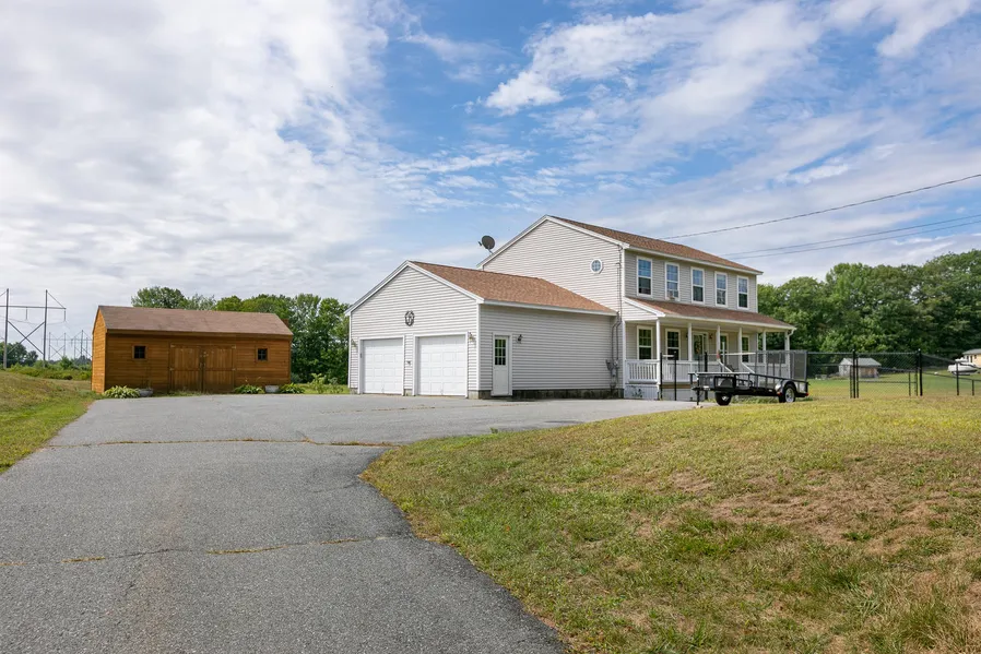 Tucked up away off of Rt 25, this fabulous colonial is a hidden gem. Situated on 3.82 acres with a fire pond and rolling fields, this home is sure to please. The front yard is fenced and gated offering safety to little ones and pets alike. The wonderful farmer's porch is welcoming and inviting. Outside you will also find a large shed in addition to the attached garage for storage of your toys and equipment. The power lines are nearby for outdoor trail access. Inside, you will find an open layout perfect for entertaining, and a cheery pellet stove for extra warmth on those cold winter nights. Upstairs, you will find 3 bedrooms plus an office space. The bonus round is the finished walkout basement along with lots of storage which round out this well appointed home.
