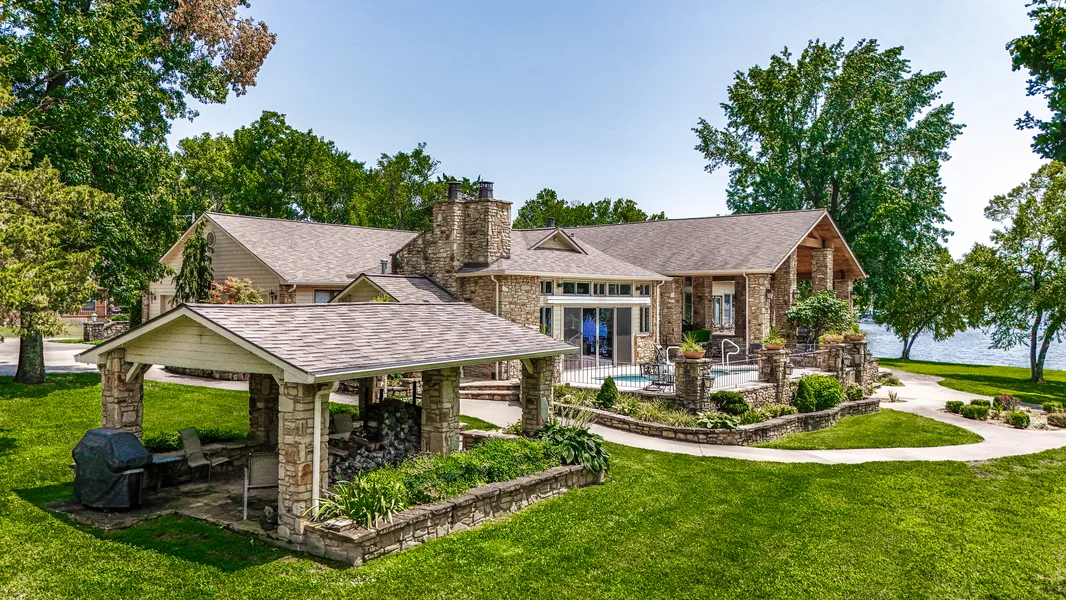 Jewel on the Lake! Don't miss this chance to own 344 ft. of gentle slope to gravel shoreline! Magnificent 4,932 sq. ft. 3 bedroom, 4 bath home with heated pool, water feature and covered outdoor kitchen. Beautiful terra cotta flooring. Amazing 875 sq. ft. game room with complete kitchen and indoor smoker. The 4 slip dock features a 42 ft. slip with lift and enclosed heated fishing dock. Walkway is big enough for golf cart access. Pre-qualified Buyers Only!