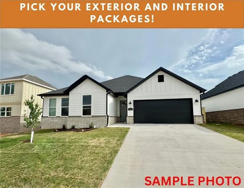 Fence, blinds and gutters included! Discover your dream home in the new neighborhood Jacob's Crossing. Arkansas plan with garage on the left and North facing! 10 ft ceilings in the living/kitchen area, linear electric fireplace, 1 level, LVP flooring throughout the main living areas and primary bedroom, quartz countertops and more. Chef's kitchen boasting frigidaire stainless steel appliances, gas range, pantry, quartz countertops, bar pull handles, large island and gorgeous backsplash. Luxurious primary bedroom features abundant natural light, while the spa-like primary bathroom offers a walk-in shower, double sinks, and spacious walk-in closets. Additional features include two large secondary bedrooms and a separate laundry room. Nestled on a generous lot with covered patio that overlooks the serene sodded, fully fenced backyard. Sturdy concrete siding & brick! Model home located at 3631 Tranquility St- Lot 1.