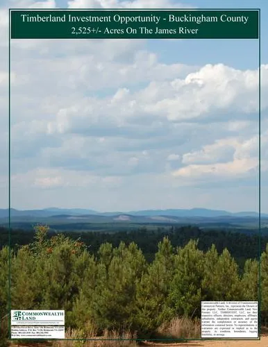 Excellent Long-term Large-acreage timberland investment opportunity offering string recreation potential and over 1.4 miles of frontage along the south bank of the James River with expansive views of the Blue Ridge Mountains to the northwest. It is located approximately 10.7 miles west of Buckingham Courthouse with 1,387' of frontage along VSR604 (Willow Creek Rd.). The property offers diverse topography and is wooded with the timber being comprised of 1,395+/-acres of planted Loblolly pine established from 2001-2007, 511+/-acres of natural upland hardwood from 1940, 538+/-acres of natural sloping hardwood from 1940, 71+/-acres pf natural bottomland hardwood from 1940 with the remaining balance in non-forested land. It offers extensive frontage along Kidd Creek along the eastern side of the property as well offering offering excellent wildlife habitat with strong populations of deer and turkeys.