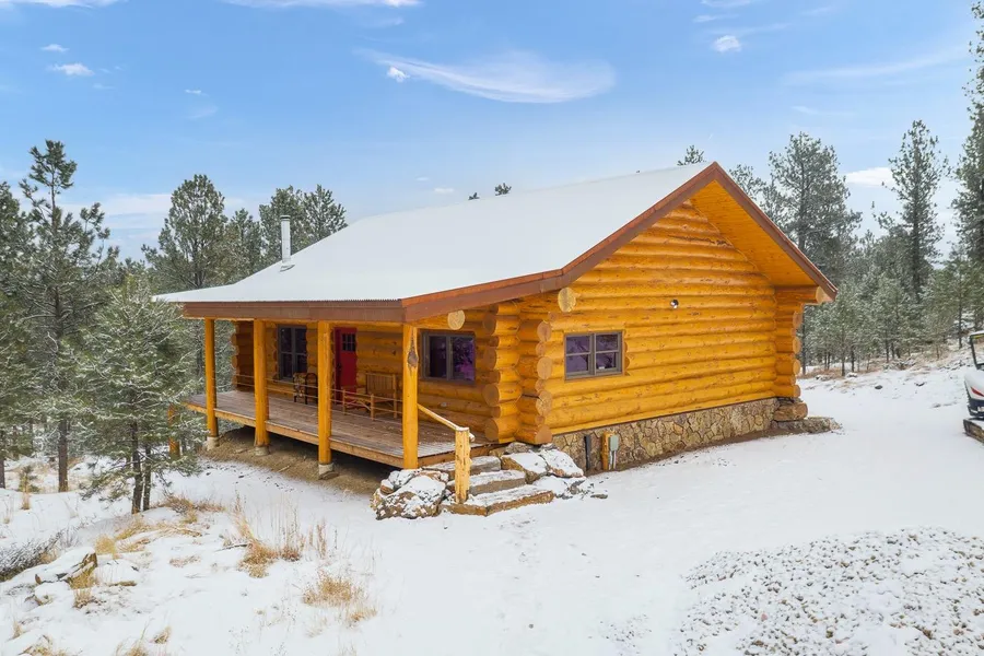 SWEET DREAMS ARE MADE OF THIS! Available for a short time only. Custom Crafted Jorgensen Log home in a perfect setting among the large granite rock outcropping, ponderosa pine trees, and bordering USFS lands!! Located a quarter mile off blacktop road. Thoughtfully designed outdoor living spaces of covered decks & patios for easy entertaining or just to soak in the beautiful views and peace and quiet. Precise attention to every detail throughout the home to give it the rustic appearance while still having the modern conveniences. Special accents include the wavy edged cedar staircase, unique light fixtures & plumbing fixtures, special flooring - everything is top of the line! The vaulted ceiling in the open living/kitchen/dining area highlights the beautiful 100-year-old ponderosa pine logs harvested from the Northern Black