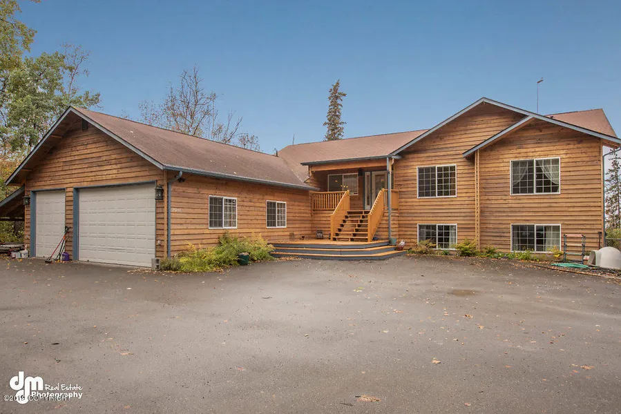 Do you need a multi generational home? What about space and a private setting? Desire land and a fenced yard? Would you love a massive garage? If the answer is yes to all of these then I have the home for you! This large 5 bd, 4 bth home sits on 2 acres and has a 4 car 1080 sq. foot garage. The open concept floor plan on the main floor has an impressive gourmet kitchen w/ views of Peters Creek& Denali. The mother in law downstairs has a separate entrance, two large bedrooms and an office with a HUGE storage room. The master bedroom in the MIL has a massive walk in closet sure to hold all of your clothes and then some. From top to bottom this home has everything you could want and more