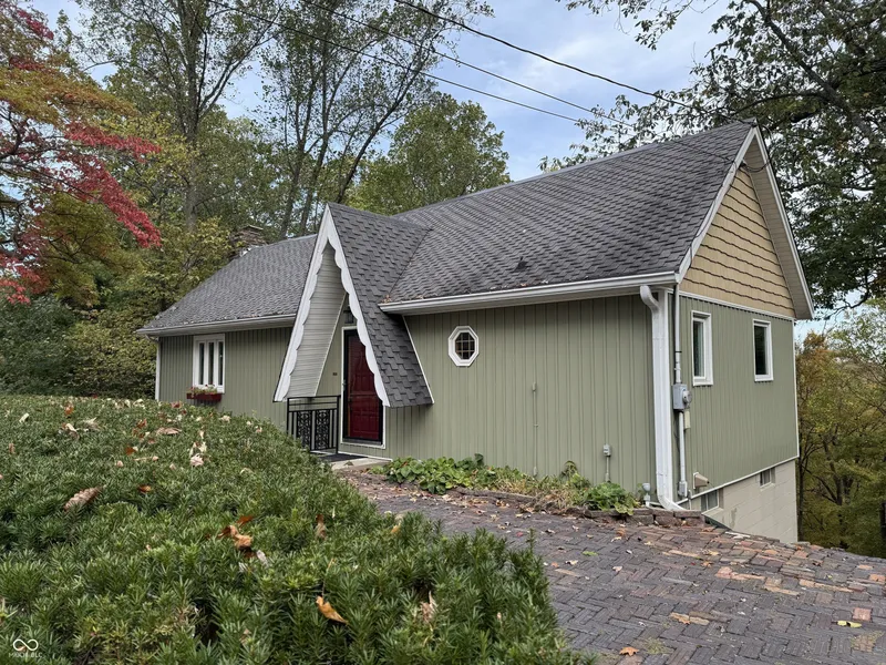 Charming Brown County Retreat - 3BR, 1BA with Garage & Cabin Nestled in picturesque Brown County, just two miles north of downtown Nashville, Indiana, this inviting 3-bedroom, 1-bath, 2-story home with a full basement and detached 1-car garage sits on a peaceful 1/2-acre lot. Whether you're seeking a full-time residence or a weekend getaway, this property offers the perfect blend of comfort, convenience, and character. A circular block driveway provides easy access, and exterior maintenance is simple thanks to updated low-maintenance siding, perennial garden beds, and minimal mowing. Step inside to find beautiful hardwood floors, porcelain tile with an elegant inlay at the entry, and a tastefully updated bathroom. The kitchen was renovated in 2016 with warm Shenandoah Cabinetry in a rich Cognac finish, complemented by Formica solid-surface countertops in Ebony Mosaic. Charming leaded glass interior windows add a unique artistic touch. This home carries a bit of Brown County history, once owned by Miss Regina Kirschner, an anesthetist at Methodist Hospital. She was featured in House and Flowers magazine for her remarkable work laying more than 10,000 paving blocks-old bricks salvaged from the L. S. Ayres home at 13th & Delaware Street in Indianapolis-many of which remain part of the property's character today. Enjoy **easy access in all directions-north, south, east, and west-**while living just minutes from the art, music, and natural beauty that make Nashville, Indiana, so beloved. Property sold As-Is.