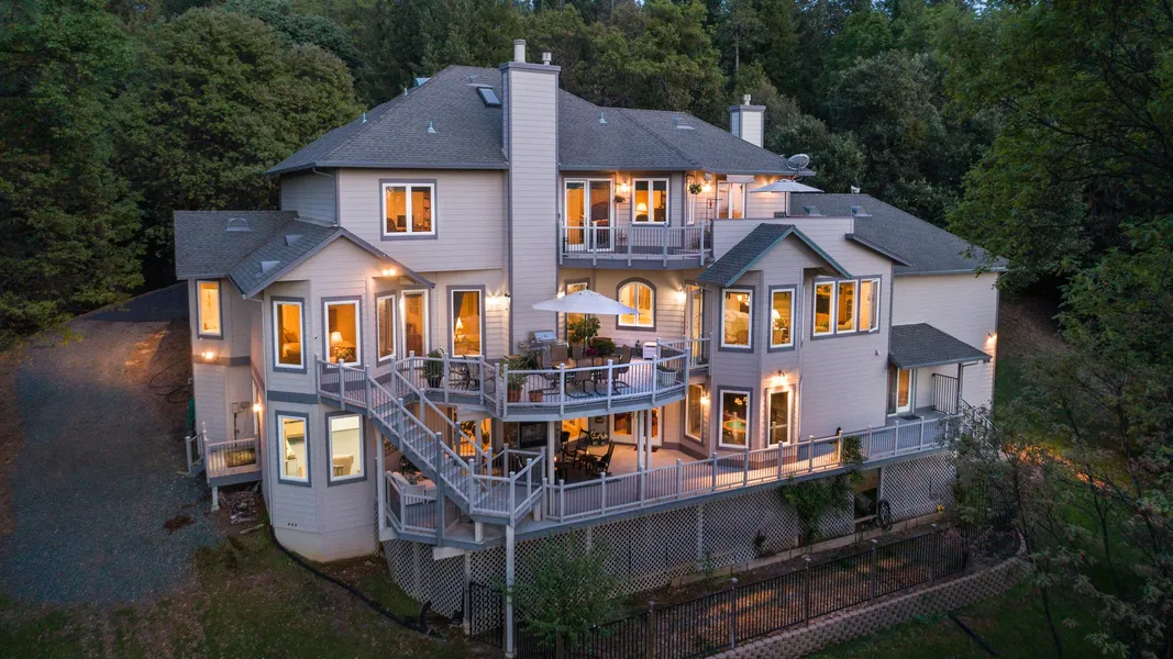 A custom-built home with 6,100 sq ft welcomes you with Italian tiles and a large formal entrance. With plenty of rooms to fill with family and friends, including 2 master suites, this 4 bedroom and 4 bath and 2 half baths offers everyone a place to rest. When everyone is ready to come together, your choices include an open floor plan kitchen with granite and high-end appliances with family room attached. Or maybe a BBQ on one of the decks off all 3 levels and catch the sunset. Want to relax with a family movie? The media room includes built in surround sound. And no need to walk to the kitchen. Just head to the full wet bar, including a 350-bottle wine closet for your favorite local wines! The first-floor master encourages you to relax and soak in its jacuzzi tub. Both master bedrooms are appointed with Moen multiple head showers and two additional bedrooms with en-suite baths. Your guests will feel pampered and private. The paved driveway is a luxury along with the extensive storage areas and separate garages. A year-round creek fed through a spring flows through the treed property. The home offers many energy efficient upgrades including multiple HVAC units for zone control and whole house fan. Are you looking to try your hand at the very popular Vacation Rental By Owner? Then the lower level with a separate entrance is perfect for a VRBO and extra income. It would also be perfect for next generation living and care.