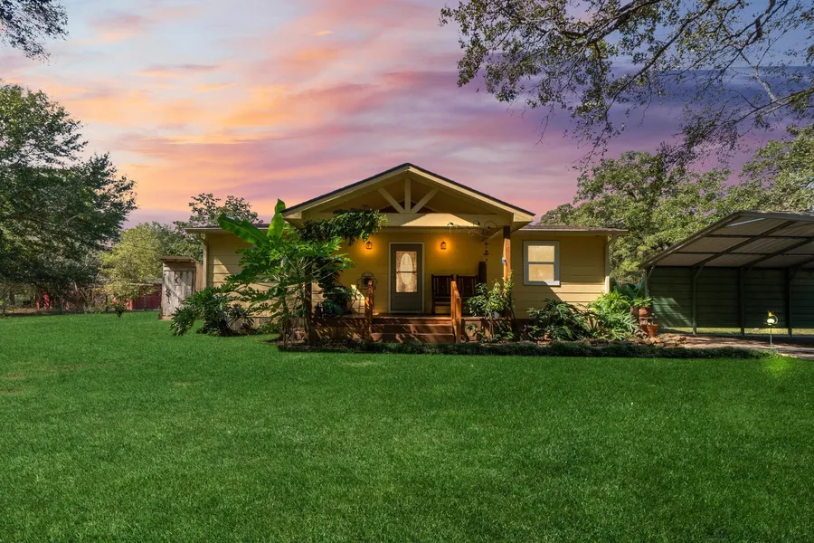 Discover your dream come true! A charming farm awaits you, with a beautiful 2-bedroom, 1-bath home! Tranquility, privacy & peace - a true slice of paradise! Fully fenced & gated! Enjoy your morning coffee on the dock overlooking a stocked pond with bass, perch, & catfish, or explore it in your 10’ John boat. 12 laying hens, 4 turkeys and 8 free range ducks included! 2 active bee hives equipped with 2 bee suits & an electric honey extractor! Nearly new John Deere zero turn mower included! Washer, dryer & refrigerator included!! Delight in fruit trees- Pear, plum, apple, fig, cherry, key lime, peach, grapefruit, pomegranate & more! 4’x16’ raised gardens! Watermelon & blackberry patches. Beautiful home with granite countertops, stainless steel appliances, & luxurious beadboard ceilings. An inviting covered front porch, screened in back porch, & outdoor storage! 20 minutes to Magnolia, 30 minutes to Cypress/Tomball, 50 minutes to Houston & College station! High & dry, low taxes, no H