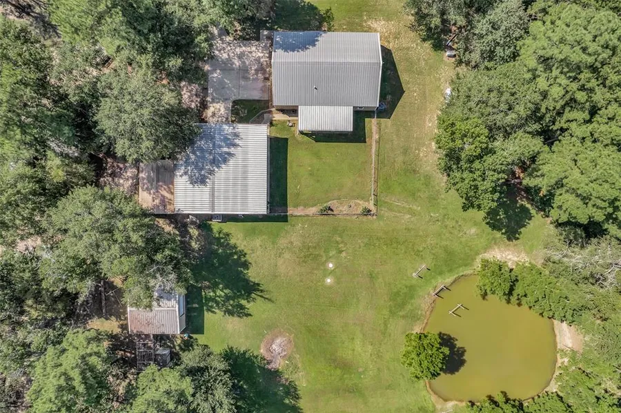 This expansive 2.06-acre property truly has something for everyone with endless features for you to discover! The main house features open-concept design with 2 full bedrooms downstairs, 2 loft bedrooms, & 2.5 baths. Primary suite offers his & hers closet with luxurious spa like bathroom. The Texas-sized covered back porch offers a beautiful view of the property. The main shop is 42x35, with AC/heat, 1/2 bath, & a fun bar area that is perfect for entertaining or working on projects in comfort. The 2nd shop is 24x24, equipped with (2) 8x10 roll-up doors, offering extra storage or workspace & attached chicken run/coop. Carport offers additional enclosed storage with roller garage door.An additonal outbuilding offers privacy & convenience, complete with 1/2 bath this building can be used for an outdoor game room or a casita. Enjoy the fully stocked pond & have peace of mind with a Generac generator to keep things running smoothly in any situation.