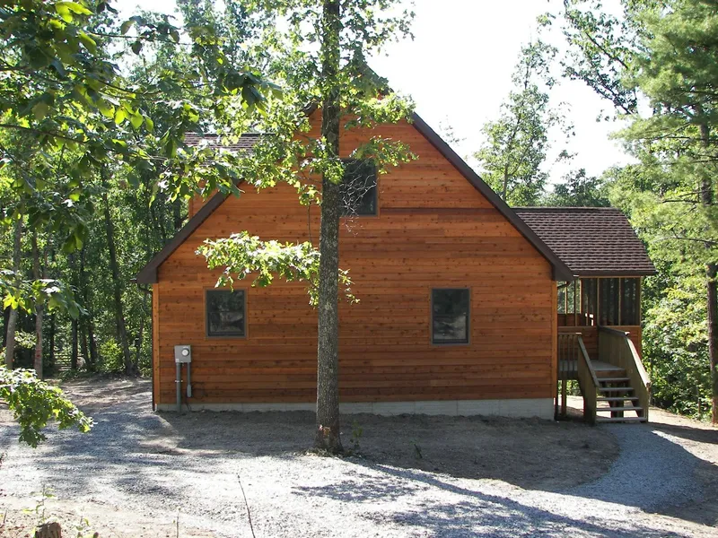 Cedar Chalet at the end of a quiet cul-de-sac. 3 BR 2 BA home with a lovely screened porch and open deck as well. Beautiful stone fireplace with a flue for woodstove. Hardwood flooring, dining area, kitchen with hickory cabinets. Escape the city of live here full time. City water and paved streets. What a value on this one!
