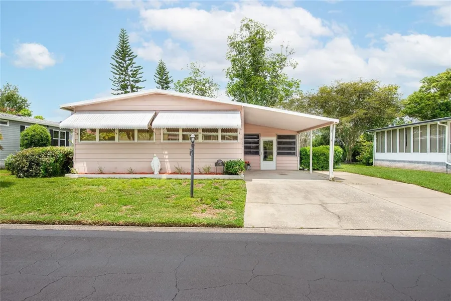 Spacious 2BR/2BA manufactured home in the desired community of Teka Village, 55+ community. This AS-IS property features a large Florida room with windows, large living room, separate dining room area with attached hutch, kitchen features range, refrigerator, dishwasher. Family room with lots of natural light and windows. Master bedroom with plenty of closet space, master bathroom shower and 2nd bedroom with multiple closet space. Outside in the Florida room area is space for the laundry room and also a work/storage area. 13 month HWA Home warranty provided for buyer by seller. This 55+ gated community features a club house that offers many events and celebrations, large lap room, area for bbq, kitchen and sit in area. A great feature is the location of this community is within minutes to the turnpike, shoppings, restaurants, hospitals, 40 min drive to the beach, 30 min drive to Lake Nona and 30 min to Orlando International Airport. This property can be a perfect primary home or for snowbirds as a secondary home to enjoy during those winter months.
