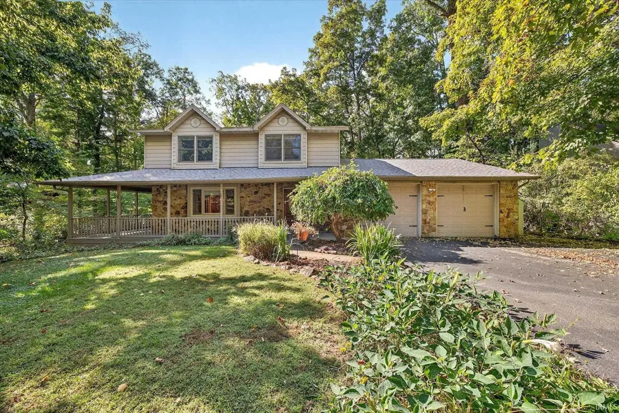Beautiful home nestled among mature trees, offering the perfect blend of privacy, warmth, and functionality. A stone-accented exterior and inviting wrap-around porch create a welcoming first impression, while multiple decks and a screened-in porch provide serene views of the wooded surroundings. Step inside to a bright, open layout featuring hardwood and slate floors that flow through the main living areas. The spacious family room centers around a stunning stone fireplace, and the updated kitchen offers wood cabinetry, stainless-steel appliances, a center island, and pendant lighting. Arched doorways lead to the dining area and foyer, creating a natural sense of connection and space. Upstairs, the primary suite offers a spa-like retreat with a jetted soaking tub, walk-in shower, and dual-sink vanity, along with a convenient laundry area. Two additional bedrooms feature large windows and generous closet space. The finished walkout basement adds flexible living space with a kitchenette, full bath, and two additional rooms—perfect for guests, hobbies, or a home office. Outdoor living shines here with a large screened porch featuring vaulted ceilings and wood detailing, multiple decks with built-in seating, and a hot tub surrounded by nature. A two-car attached garage with built-in storage completes this inviting property that beautifully combines comfort, versatility, and wooded tranquility.