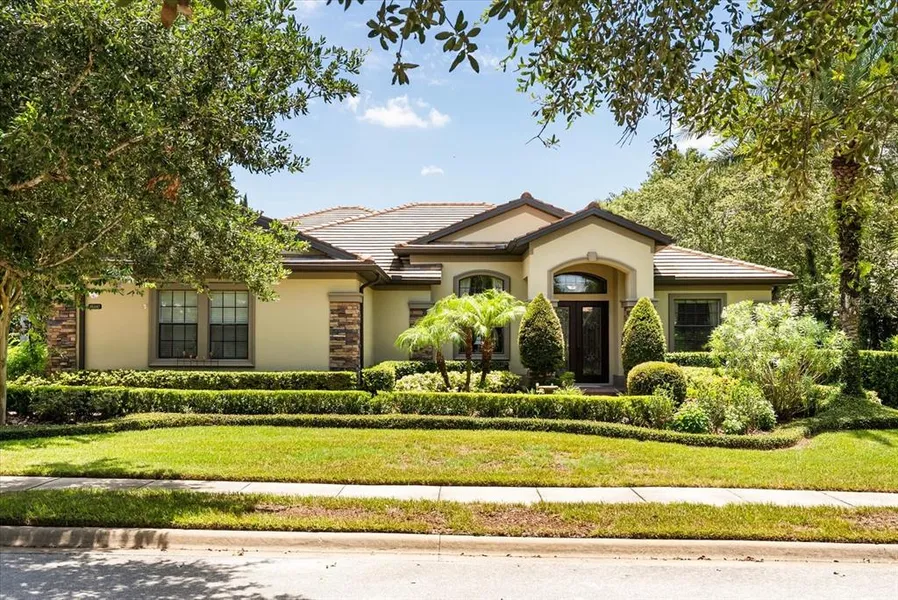 PRICE IMPROVEMENT! This beautiful home is located in the prestigious Red Tail Community with resort-style, golf course living! Discover true luxury in this elite gated community in Sorrento, where serenity, craftsmanship, and golf course living converge. This stunning two-story estate offers nearly 3,500 square feet of impeccably maintained space, featuring 4 bedrooms, 4 bathrooms, a dedicated office, and a generous upstairs bonus room -all set on a beautifully manicured homesite with golf course views. From the moment you arrive via the long paved driveway, you're greeted by a striking stone-accented exterior, three-car side-entry garage, and grand double-glass door entry. Inside, the ambiance is immediately upscale-featuring dark hardwood flooring, formal living and dining rooms with crown molding, and designer lighting. The chef-ready kitchen is as functional as it is stylish, boasting dark granite countertops, with breakfast bar, built-in stainless-steel oven and microwave, gas cooktop with vent hood, and abundant custom cabinetry. Adjacent is a light-filled breakfast nook, and a spacious family room with views of the outdoor oasis-perfect for both entertaining and daily relaxation - all overlooking the screened pool and spa, complete with lounge shelf and covered seating-the perfect setting for outdoor entertaining or serene relaxation with golf course views. The primary suite is regal in proportion, with tray ceilings, walk-in closet, additional closet and a luxurious bathroom showcasing dual granite vanities, a glass-enclosed shower, separate soaking tub, and a secluded water closet. A home office with dual-access from the foyer and primary bath delivers seamless convenience and privacy. The other three bedrooms on the main level feature plush carpeting and ceiling fans, offering flexible comfort for family or guests. Upstairs, a spacious bonus room with its own full bath serves as an ideal entertainment hub, guest suite, or multi-purpose retreat. Living in Heathrow Country Estates means embracing a lifestyle built around peace and leisure-golf cart friendly, with vehicle restrictions ensuring tranquility and safety. Lush common areas, gently winding walking trails, and scenic landscaping create a serene backdrop for daily life. With nearby golf access, upscale neighbors, and close proximity to Sorrento's Lake County lifestyle, you'll enjoy both privacy and convenience. Book your exclusive showing today!