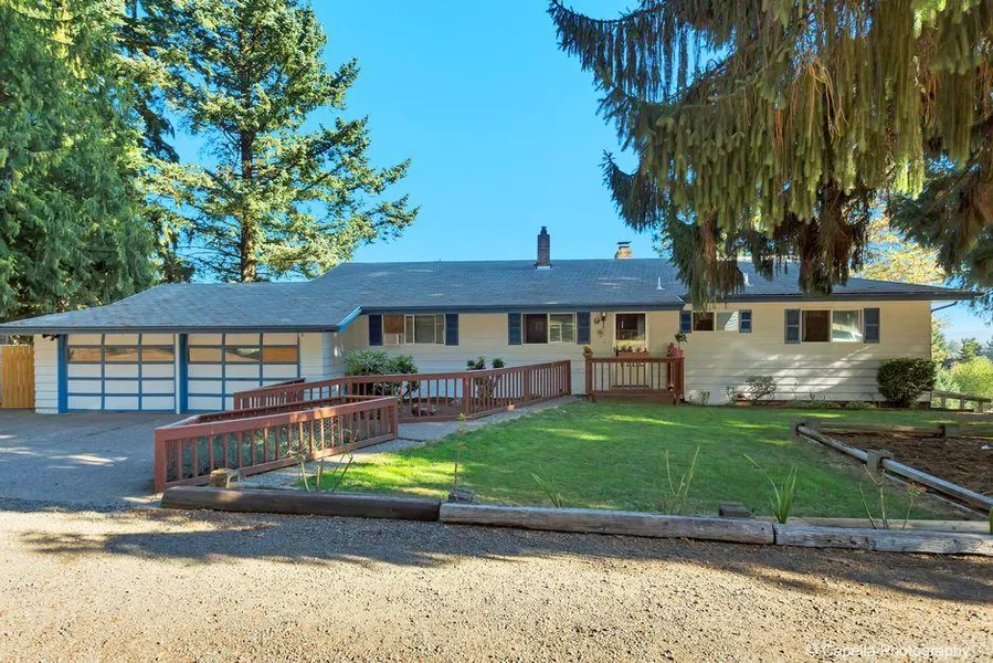 Spacious Remodeled Home on Pastoral Land! Well-Maintained, Fabulous Cosmetic Fixer. Two Living Quarters with Separate Entrances & Two Kitchens! Multi-Gen Living Potential! Large Main Kitchen. Two-Sided Fireplace in Dining & Living Rooms. Numerous Windows with Mountain Views! Multi-Level Deck, Hot Tub, Two Double Garages, & RV Storage! Acreage includes 30x50 Shop, Garden, & Fenced Pastures. Perfect for Horse or Farm Animals!