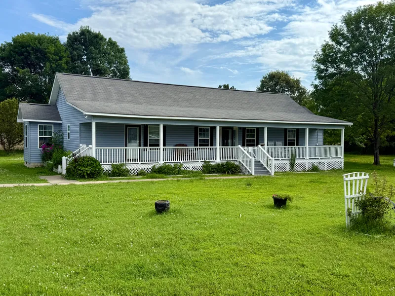 Additional highlights include central heat and air, durable LVP flooring, ample storage throughout, a paved driveway with parking pad, expansive front and back porches, and a detached carport with living quarters. A separate storage building adds further convenience.