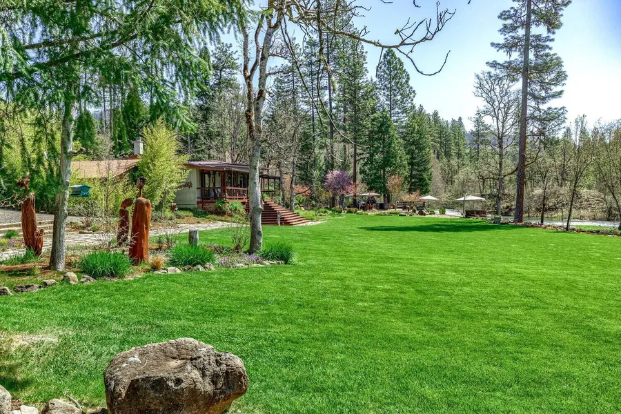 A mountain paradise found! This stunning family waterfront retreat is the hidden gem you've been searching for. Situated on nearly 80 acres with 1/4 mile of Big Butte Creek waterfront this picturesque family getaway is truly one to see. The property itself features a 3 bed 2 bath very comfortable and remodeled home with high end fixtures, amazing outdoor space including an outdoor kitchen, playground, several firepits and sitting areas plus a extremely private 1 bedroom cabin overlooking the water below! The grass area is level and descends directly into the water for an easy swim or place to drop a fishing line. The location and amenities screams wedding venue or short term rental retreat! Rounding out the property is a well cared for garden and small hobby vineyard, a large pond, areas of large timber and views of Mt. McLoughlin all surrounded by 7,000 acres of BLM land. A short 35 min trip to Medford or 20 minutes to Eagle Point, this extremely special property is one to see.