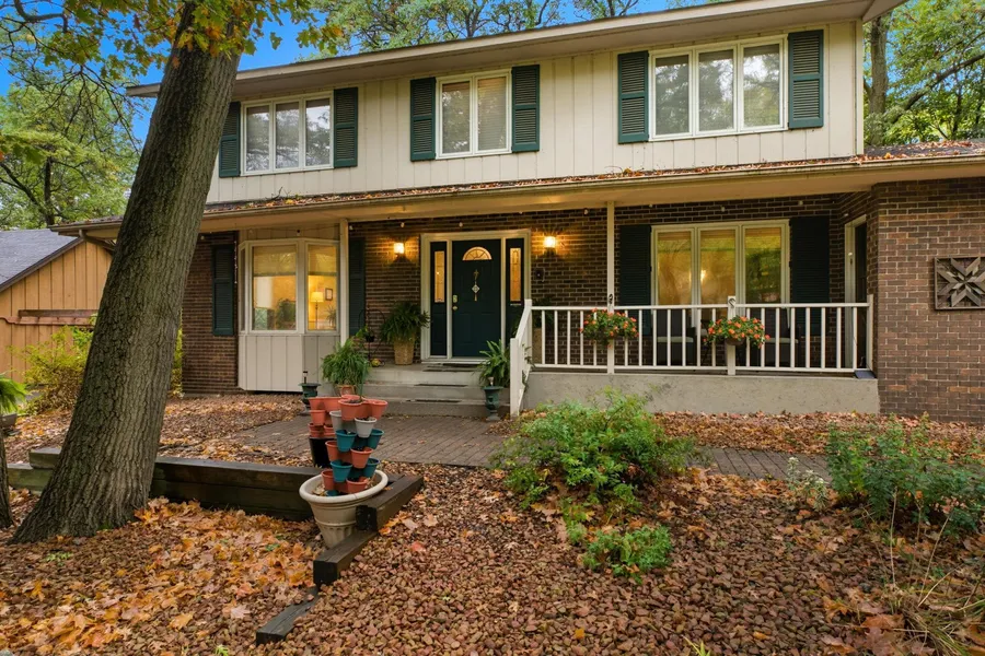 Welcome to your beautifully maintained two-story home, nestled among mature trees in the quiet Wayside neighborhood. This residence offers 4 bedrooms, 3 bathrooms, and a double garage. Upon arrival, you'll be greeted by a cozy front porch, ideal for outdoor relaxation and unwinding after a long day. The main floor boasts a spacious entry, leading into a living room that features a gas fireplace and built-in shelving, perfect for those cozy evenings at home. The sunroom windows frame picturesque views of the surrounding nature, bringing the outdoors in. The open-concept kitchen has granite countertops, recessed lighting, and a breakfast bar. For more formal gatherings, the chic chandelier sets the tone in the formal dining area. Conveniently located on the main floor is also a half bath and a large laundry/mud room. On the upper level, you'll find four generously sized bedrooms and a full bath. The main bedroom includes a $3/4$ bath and a walk-in closet. The lower level offers a family room and plenty of flexible space.