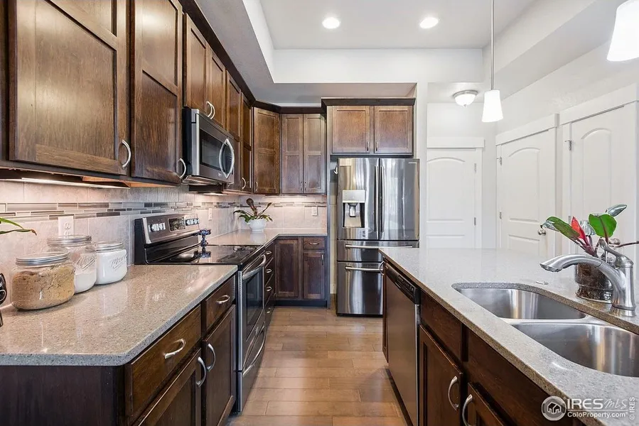 Sellers just had BRAND NEW CARPETING installed throughout the unit! Wonderful, attached dwelling in the heart of it all, that offers both a functional layout paired with tasteful finishes throughout. This 2 bedroom, 3 bath home features dual ensuites, highlighted by tiled showers and granite countertops. Enjoy the convenience of a 2nd floor laundry room and an additional loft space suitable for a desk. The main level is canvased with engineered wood flooring, Maple cabinetry, stone countertops, and a functional gas fireplace. The unit faces south which allows for plenty of natural light. An attached 2 car garage and unfinished basement space round out the remainder of the amazing features. Easy access to I-25 and everything that central Fort Collins has to offer!