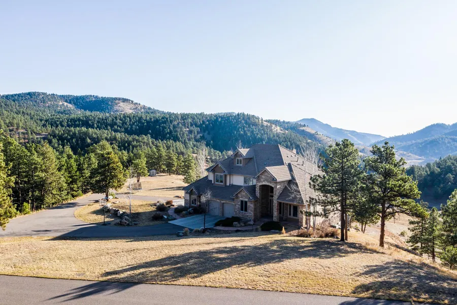 Welcome to 25576 Elk Range, an open, convenient and well-appointed mountain retreat found in a quiet, gated community. Located on 22 acres of beautiful, gently sloping land. A dramatic two-story entry welcomes you to an open concept floor plan revealing a chefs kitchen w/ quality stainless appliances, granite countertops, plenty of storage and its airy access to the generous great room bathed by natural light via soaring, oversized windows allowing breathtaking views of this properties prized acreage and gorgeous countryside and mountains beyond. Upstairs, the luxurious main suite offers a balcony, fireplace and over-sized bath that is beautiful in function and form and provides the ultimate retreat. This floorplan may be its greatest attribute with large rooms and spaces throughout while taking advantage of the captivating views from nearly every room. Offering the ultimate in Colorado living w/ serenity, views and a location with the amenities of Evergreen and the city of Denver.