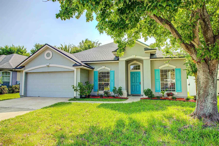 Located in the desirable Hidden Lakes community of St. Augustine, this 4-bedroom, 2-bath home offers one of the best values at this square footagethoughtfully designed with a split floor plan for added privacy and function. Set on a 60-foot-wide lot in Flood Zone X (no flood insurance required), the home backs to tranquil water views and features a covered lanai and fully fenced backyard, perfect for relaxing or entertaining. Inside, the open-concept living area is warm and inviting, featuring rich wood-look tile flooring, an abundance of natural light, and a fireplace for cozy evenings. The kitchen is a standoutcrafted for those who love to cook or entertainwith high-end granite countertops, a new Samsung refrigerator, smooth-top stove, ample cabinetry, and generous counter space for prep and serving.
