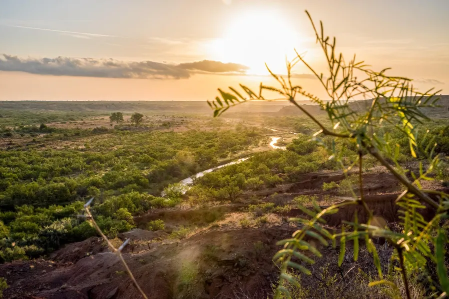 Trees include mesquite and hackberry and cottonwood along the draws. Shin