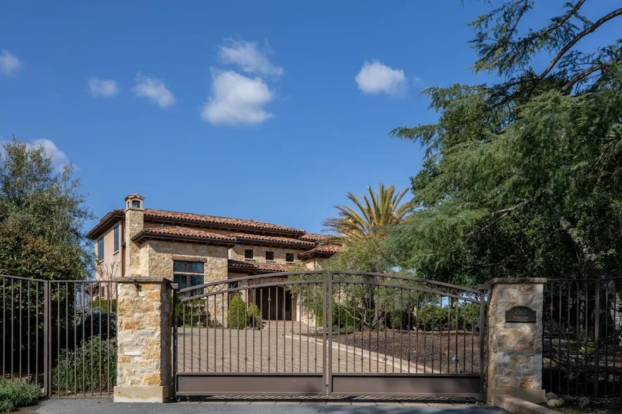 Newly Priced to Sell! This luxurious rustic Mediterranean estate is an exceptional property on more than one acre of beautifully landscaped grounds, complete with a Pinot Noir vineyard and bordered by the Packard Foundation orchard. Refined craftsmanship is evident throughout, with hewn beams, travertine finishes, and iron chandeliers enhancing every detail. The expansive two-story home features 5 bedrooms, an office, and 4.5 baths, complemented by impressive formal spaces and a fabulous kitchen and family room ensemble that opens to a covered loggia with heaters, built-in barbecue, and fire pit terrace. Adding to the allure are views out to the Bay, the 49ers stadium, and the Valley, along with the serene backdrop of the adjoining 60-acre Packard Foundation apricot orchard. This property, located just two miles from downtown Los Altos, offers privacy, prestige, and convenient access to top-rated Los Altos schools, making it ideal for Silicon Valley living. Proposed drawings for a 1 bed 1 bath ADU on property!