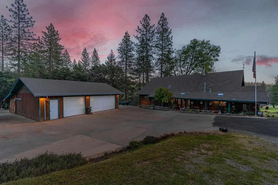 Welcome to the upscale mountain community of Sherwood Forest! Although located within minutes of Hwy 88, it's setting feels remote, peaceful and private. Views captured from the covered deck include pastures and local mountain views. Property features a year around spring and small pond. Original owner/builder is selling this unique home that is full of rustic character and charm. The custom wood work details throughout the home feature logs that were cut and milled on the property! All 3 bedrooms are all located on the main floor. The master suite features a beautiful stone walk-in shower and outside access. Vaulted ceilings in the living area and the unique wood stairs open to the loft are a must see! Kitchen has beautiful cabinetry, plenty of granite counter space and updated appliances. Concrete covered patios and decking offer plenty of areas to sit back and enjoy nature. Large, detached 3 car garage with additional storage and overhang space to store equipment.