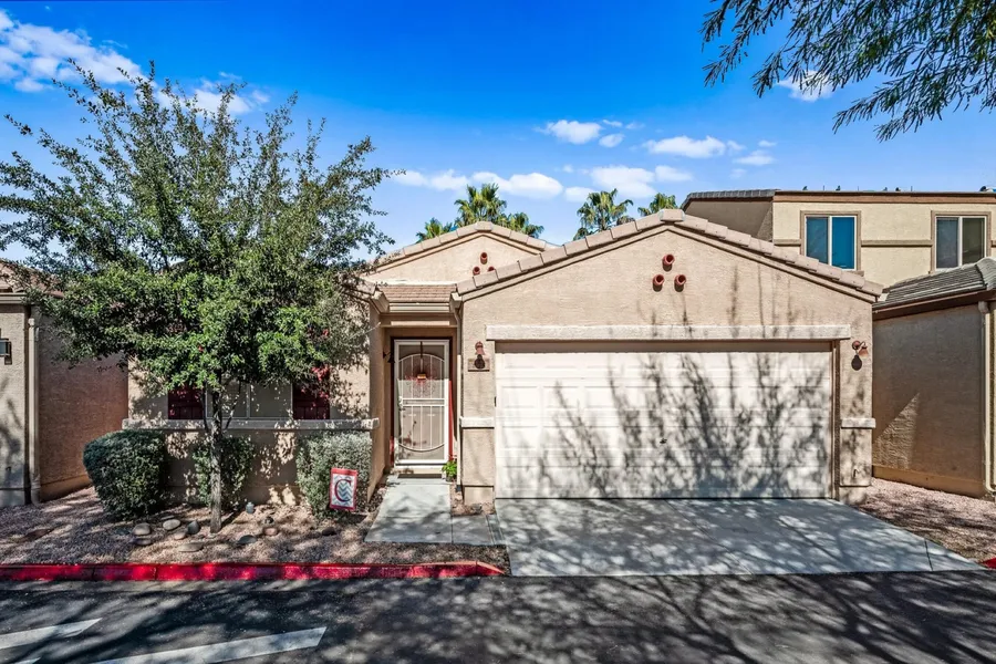 Come and check out this wonderful, single family detached/lock and leave home, in the private gated neighborhood of Lindsay Park. This North/South single level home has no interior steps and a great room open floor plan. The kitchen has spiced Maple cabinetry with decorative pulls, stainless steel appliances, granite counter tops, built in microwave, pull out faucet, and a decorative backsplash. Both bathrooms have granite countertops with the drop in sink and the primary bathroom walk in shower was beautifully remodeled in 2020. Primary bath comes with a raised panel barn door for privacy and there are two closets with organizers. You will love the size of that bedroom, which is separate from the other other bedroom and the double door Den! Throughout the home you will find awesome solar tubes to brighten up the hallway, laundry room and the primary bathroom. There are also raised panel doors, lever hardware, neutral coloring, faux wood blinds and tile in all the right places. Easy maintenance backyard has a patio Composite deck and shade structure that conveys. Washer/dryer and Refrigerator stay for you! Front yard maintenance is taken care of by the H.O.A! Security doors on both the front and the back doors (frosted Filmed) for nice air flow! Good storage here too, with the Laundry room and Garage having built in cabinetry and storage racks. Gutters on the home with a French drain directing H20 to the front area. Hard wired auto Coach lighting for the front! HVAC system replace Aug 2023 and Hot Water Heater replaced 2020 with leak detection! The community features two (one is heated) pools and a spa, and a couple of grassy areas with Ramadas. This home is close to all kinds of shopping/dining and the 60 Freeway!