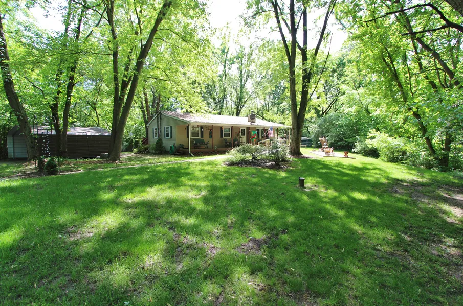 Cozy 3 bedroom, 1 1/2 bthrm ranch style home, located on almost 5 gorgeous wooded acres in Goose Lake; this home has front, side, and back covered porches; view the wildlife year-round from the comfort of the sunroom, which boasts floor to ceiling windows; lovely wood-burning fireplace in the living room was recently serviced and is ready for use; handy mud room off side porch; partially finished basement has added space for additional rooms or storage; 1 car detached garage, carport; convenient pull through driveway; barn/outbldg in backyard was used for horses, but stalls have been removed; fenced back yard is surrounded by nature's beauty; small pond on property; enjoy all Goose Lake privileges from community pool, beach, and clubhouse, to the 4 lakes that are a part of the Goose Lake subdivision; great opportunity!