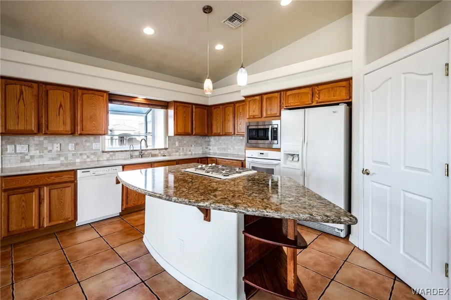 This 3 bedroom, 2 bath custom pool home sits on a 1/3 acre lot in the gated community of Majestic Crest @ Fox Creek. The double door entry opens to a bright living area with large picture windows showcasing mountain views and the backyard with heated pool, spa, and soaring palm tree landscaping. The kitchen features quartz countertops, a walk-in pantry, and a quartz island. The primary suite offers private pool access, a walk-in shower, dual sinks, walk-in closet, and an attached office/nursery. Additional features include a large laundry room offering extensive climate-controlled storage, an air-conditioned boat-deep garage, side parking, 1.5" bullnose corners, and Low-E Milgard tinted windows. Majestic Crest is a gated community of only 37 custom homes, located minutes from shopping, Laughlin casinos, the Colorado River, restaurants, and medical facilities.