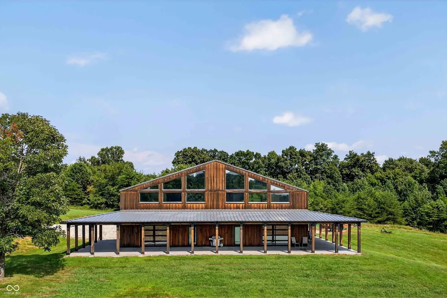 You will not find another BARNDOMINIUM in Southern Indiana like this... PLUS seller is open to TRADE! This one-of-a-kind find offers over 10,000 sq. ft. with an exquisite FOUR bedroom, 2.5 bathroom situated on 77.71 acres, offering the perfect balance of modern engineering, energy efficiency, and outdoor adventure. Built on a 6-inch concrete slab with steel beam construction and spray foam insulation (R-35+ rating), this home was designed for strength, comfort, and longevity. Inside, you'll find an open-concept great room featuring exposed steel beams for architectural detail, a rare oversized fireplace insert, and a dramatic industrial ceiling fan as the centerpiece. The kitchen and dining area flow seamlessly offering a great gathering space with garage doors and windows to create additional space connected to the covered outdoor area. Down the hall, you will find the primary suite including a breathtaking shower offering cedar-lined floor, elegant tile work, and custom glasswork along with a spacious walk-in closet. In addition, you will love the dedicated office space, half bathroom, and well designed laundry room/mudroom area on the main level. Upstairs, you'll find another spacious living space with stunning views out your upper level windows, additional bedrooms, another bathroom, plus expansive attic storage the size of the rooms below. Additional highlights of this home is having over 6,000 sq. ft. dedicated to the hobby enthusiast. Whether you want to build cars, rock crawlers, guns or just a great hangout spot this is efficiently setup and ready. Commercial-grade garage doors throughout home. This space is climate controlled like the rest of the home as well as has plumbing throughout. Heating and efficiency are unmatched with radiant floor heat powered by either (or both) a wood boiler and propane boiler, dual high-efficiency propane HVAC systems, and a hot water system that runs three different ways.