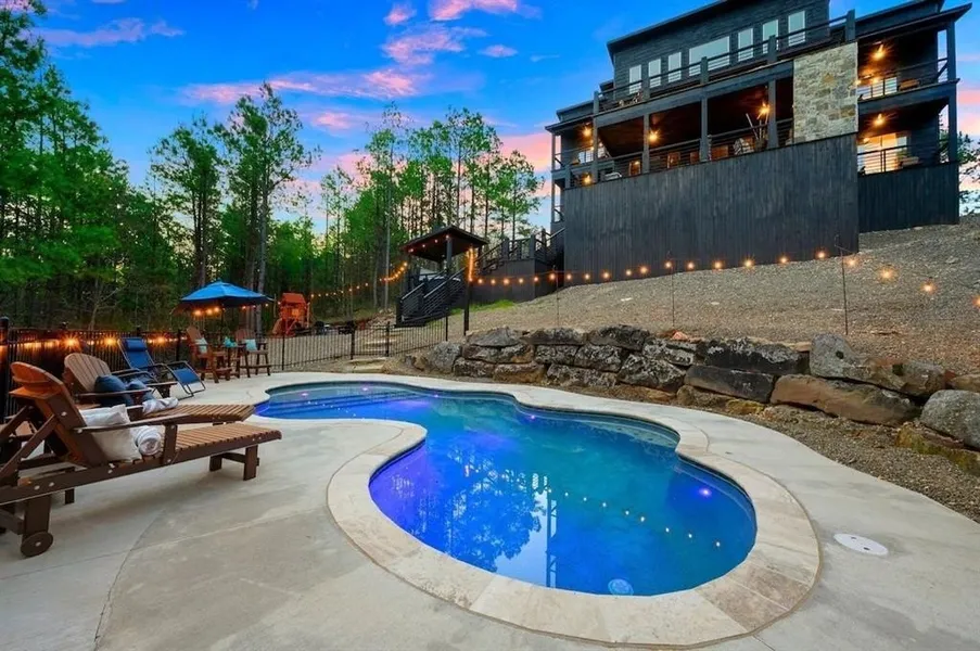 Mountain Glam Meets Five-Star Fun in Hochatown/Broken Bow Oklahoma Welcome to your next showstopping investment and dream getaway. This 5-bedroom, 5-bath luxury STR cabin is perched in Carter Mountain West , a highly sought after area and delivers elevated style, bold design, and unforgettable experiences at every turn. Inside, you'll find four oversized king suites, each opening to its own private balcony perfect for morning coffee with a view. A bunk room with queen over queen beds adds flexible sleeping space, while the game room brings the entertainment with a pool table, shuffleboard, and room to gather. The full bar sets the stage for evening cocktails and late-night laughs. It has a full wine refrigerator, beverage refrigerator and icemaker so upper level guests can enjoy their own space. The upper level has fantastic mountain views at every angle . All decks have upscale outdoor furnishings the lower level deck sets the tone for evening relaxation with a huge gas fireplace. Main living area creates the mood for romantic evenings with a floor to ceiling fireplace and upper level living and game room has another fireplace keeping it cozy and warm on cool mountain nights. YES 3 fireplaces in all and a firepit . The hot tub is oversized and sits under a gazebo like deck. Step outside to your private resort escape. The heated swimming pool makes a splash in spring and fall, while the expansive deck invites you to soak in sweeping mountain views. Location? Spot on. You're minutes from Broken Bow Lake and Marina, Beavers Bend State Park, top-rated dining, breweries, wineries, Adventure lovers will appreciate nearby boating, hiking, fly fishing, kayaking, zip-lining, ATV trails, horseback riding, and golf at Cedar Creek. Plus, Choctaw Landing Casino is just around the corner for added excitement. Whether you're hosting high-end vacationers or creating your own luxury escape, this cabin checks every box. Turn-key. Income-ready. Absolutely unforgettable.