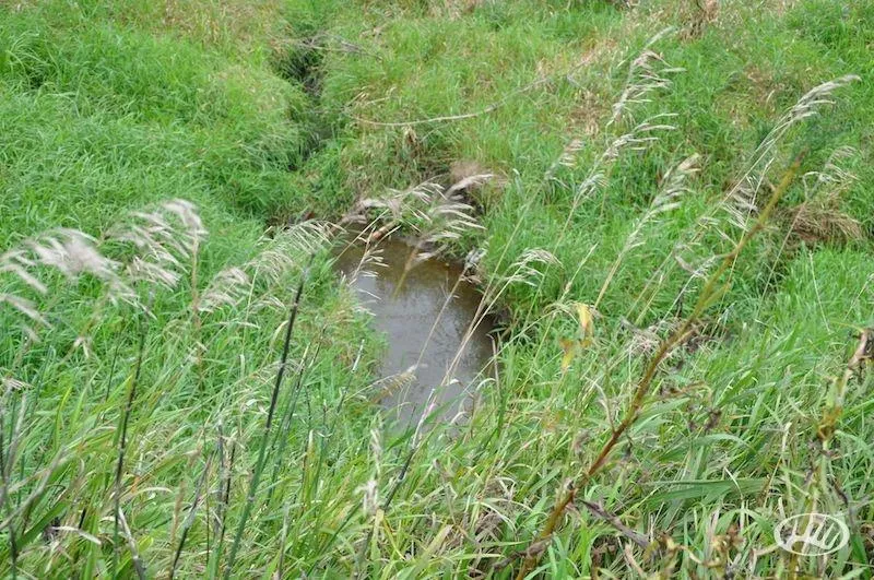 - Small stream flows along the edge of the property