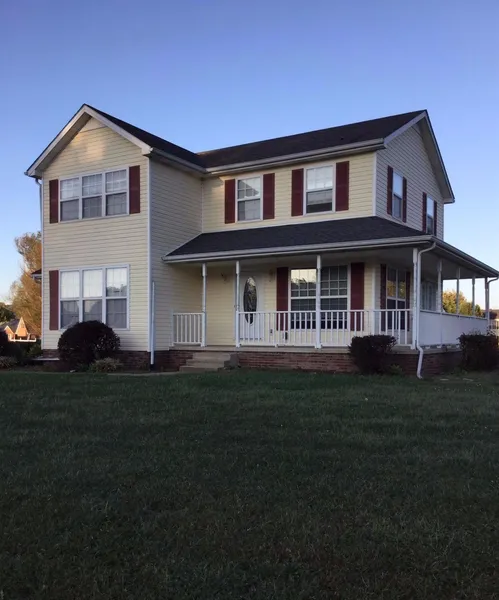 Here is a 2 story, 4 bedroom, 2 full bathroom home located in the desirable neighborhood of Hunter's Ridge. This home features first floor master. Kitchen with recessed refrigerator. Dining area off kitchen has French doors leading to covered side porch. First floor also provides living room and family room. Family room features free standing propane fireplace and the French doors take you to the back deck. Upstairs features 3 bedrooms and 1 full bathroom. This home sits on 2 level, corner lots. It boasts a covered porch that wraps around the front and the side for your relaxing pleasure. Storage building with double doors. Some fresh paint.