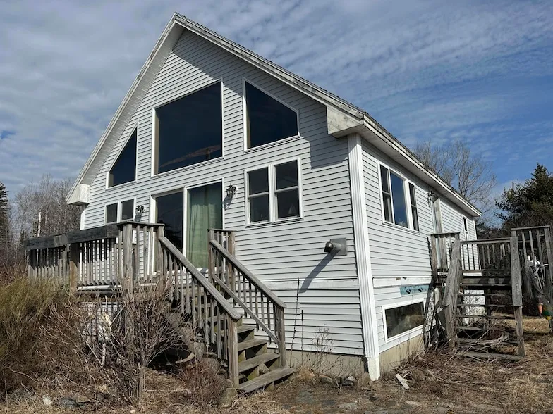 Nestled in the charming fishing village of Bernard Maine, this 3 bedroom, 2 bath chalet offers stunning water views and endless potential. Perched on a full basement, the home boasts a classic chalet design with soaring ceilings, exposed beams, and large windows that capture the coastal scenery. Inside the open concept living area is warmed by a pellet stove, with plenty of natural light streaming in. The kitchen and bathrooms are ready for your personal touch while the bedrooms provide a cozy retreat after a day by the water. Though in need of TLC this home has great bones and is waiting for the right owner to restore its charm. Whether you're looking for a year round residence or a seasonal getaway, this Bernard gem is an opportunity to own a piece of Maine's beloved coastline.